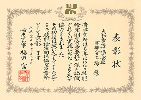 宇都宮工場が栃木県職業能力開発協会より表彰を受けました 技術情報